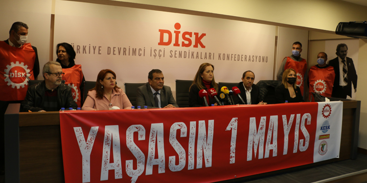 Devrimci İşçi Sendikaları Konfederasyonu (DİSK), Kamu Emekçileri Sendikaları Konfederasyonu (KESK), Türk Mühendis ve Mimar Odaları Birliği (TMMOB), Türk Tabipleri Birliği (TTB), Türkiye Diş Hekimleri Birliği (TDB) 1 Mayıs programını DİSK Genel Merkezi’nde düzenlediği basın toplantısı ile açıkladı. Genel başkanlar ve yönetim kurulu üyelerinin katıldığı açıklamada salona “Yaşasın 1 Mayıs” pankartı asıldı. Ortak basın metnini DİSK Genel Başkanı Arzu Çerkezoğlu okudu.