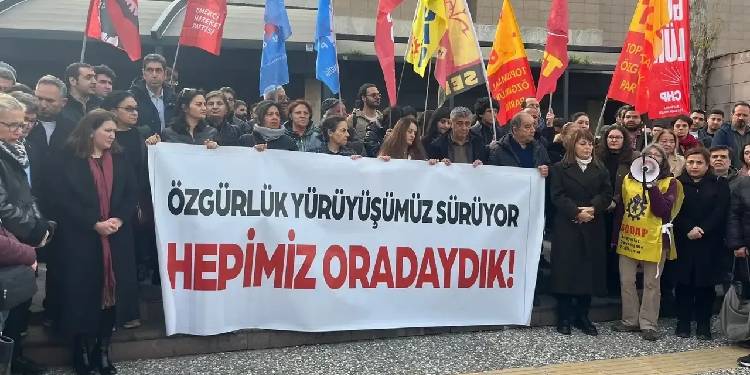 İstanbul Büyükşehir Belediyesi Başkanı Ekrem İmamoğlu’nun 19 Mart 2025’te gözaltına alınmasının ardından İzmir’de yapılan protesto eylemlerine katıldığı için 4’ü tutuklu olmak üzere 22 kişinin yargılandığı davanın duruşması İzmir 49’uncu Asliye Ceza Mahkemesi’nde görüldü. Duruşmada “Cumhurbaşkanına hakaret” suçlamasıyla yargılanan 22 kişi ile avukatları hazır bulundu. Duruşmaya çok sayıda yurttaşın yanı sıra CHP Genel Başkan Yardımcısı Gökçe Gökçen ve İzmir Milletvekili Yüksel Taşkın, DEM Parti İstanbul Milletvekili Kezban Konukçu da katılı