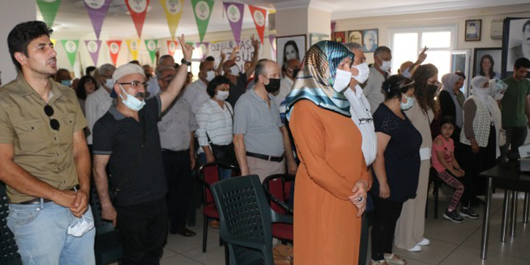 HDP Bahçelievler İlçe Örgütü’nde anmanın yapıldığı salona “Em bi ruhê 14’ê Tîrmeh’e têcrîdê bışînın û azadîya xwe pêk bînın”, “Özgür yaşam özgür kadınla mümkündür” pankartları asıldı. Anma açlık grevlerinde yaşamını yitiren isimler adına bir dakikalık saygı duruşuyla başladı. Ardından 1980 darbesi sonrası cezaevinde yaşananları anlatan sinevizyon gösterimiyle devam etti.