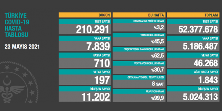 Sağlık Bakanlığı, koronavirüs (Kovid-19) günlük hasta tablosunu paylaştı. Verilere göre, Türkiye’de koronavirüs nedeniyle son 24 saatte 214 kişi daha hayatını kaybetti, 710 yeni hasta dahil olmak üzere 7 bin 839 yeni vaka tespit edildi.