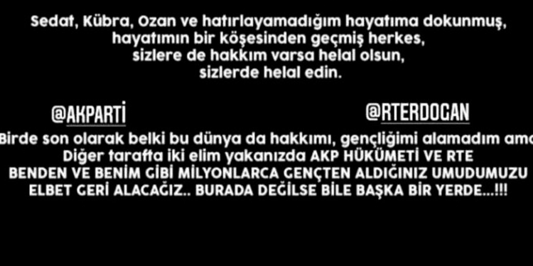 Önceki gün, Antalya’nın Kepez ilçesine bağlı Düdenbaşı Mahallesi’nde yaşayan 24 yaşındaki İhsan Bekkaya, yaşamına son verdi. Geride bir intihar notu bırakan Bekkaya, intiharından dolayı AKP’yi ve AKP’li Cumhurbaşkanı Recep Tayyip Erdoğan’ı suçladı. Bekkaya, sosyal medya hesabından bıraktığı intihar notunda AKP ve Erdoğan’ı etiketleyerek, “Bir de son olarak belki bu dünya da hakkımı, gençliğimi alamadım ama diğer tarafta iki elim yakanızda. AKP hükümeti ve RTE benden ve benim gibi milyonlarca gençten aldığınız umudumuzu elbet geri alacağız… Burada değilse bile bir başka yerde!” ifadelerini kullandı.