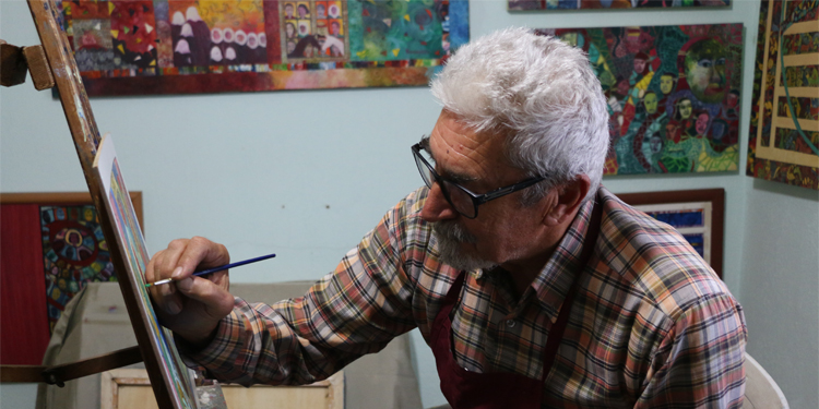 Türkiye’nin “Demokrasisizlik” tarihini çizdiğini söyleyen ressam Ramazan Soğukpınar, Roboski, Şengal, Halepçe ve Ankara Gar katliamları gibi birçok olayı resmetti.