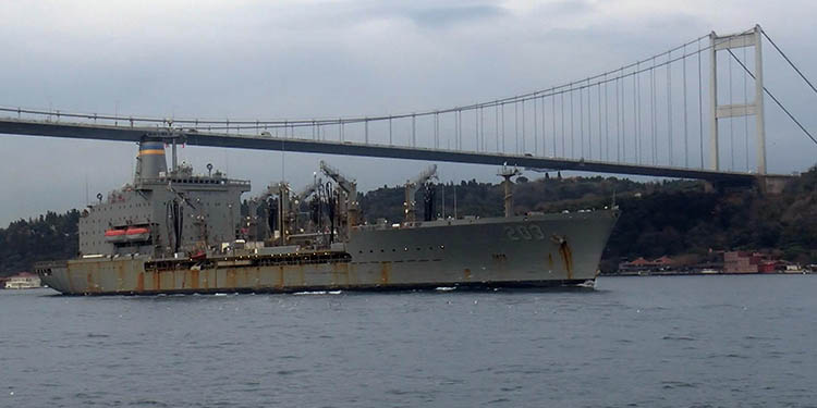 ABD Donanması’na ait 203 borda numaralı savaş gemisi ’USNS Laramie’, İstanbul boğazından geçti.