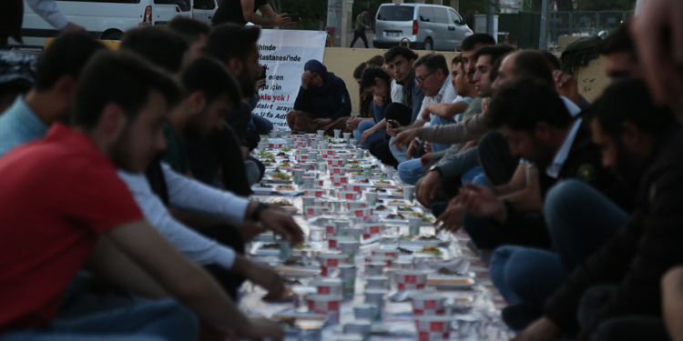Ardından okunan ezan eşliğinde yapılan “Adalet” temennisi dualar ile oruçlar açıldı.