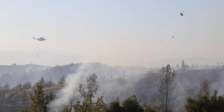 Turgutlu mahallesinde ormanlık alanda henüz belirlenemeyen sebeple yangın çıktı.