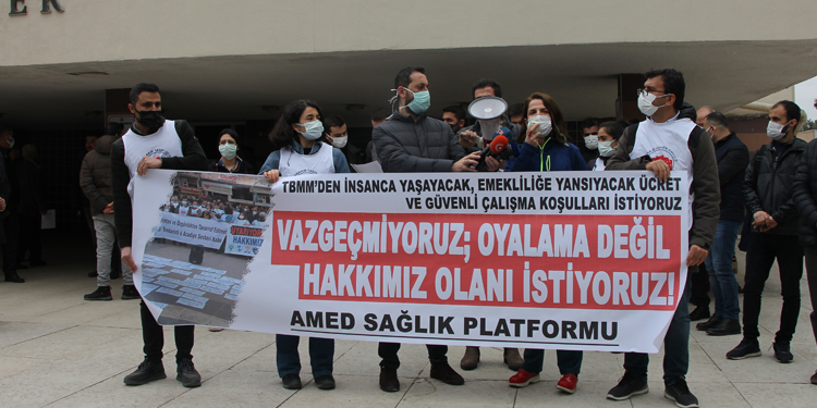 Amed Sağlık Platformu, sağlık çalışanlarına verilen maaşların ortaya konulan emeği karşılamadığına dikkati çekerek, taleplerini sıraladı.