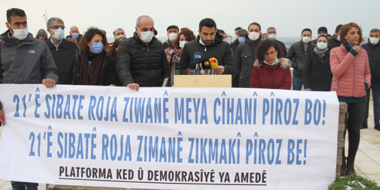 Emek ve Demokrasi Platformu, 21 Şubat Dünya Anadil Günü’ne ilişkin Diyarbakır Eğitim ve Bilim Emekçileri Sendikası (EĞİTİM-SEN) 1 Nolu Şubesinde basın açıklaması yaptı. “21’e Sibatê Rojan Zimanê Zikmakî ê Cîhanê Piroz be” (21 Şubat Dünya Anadil Günü Kutlu Olsun) pankartının açıldığı açıklamada,  Kürtçe’nin Dimilkî metnini Eğitim-sen üyesi Semra Birtane, Kurmancî lehçesini ise Türk Tabipler Birliği (TTB) Yönetim Kurulu Üyesi Mustafa Yaşa okundu.