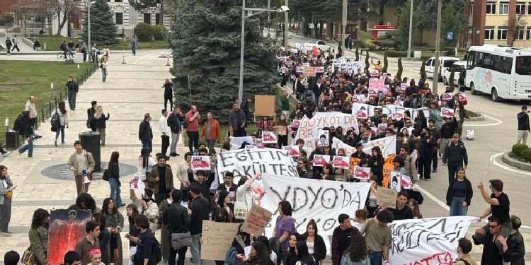 Boykotu sürdüren İletişim Bilimleri Fakültesi (İBF), Edebiyat Fakültesi, ve Yabancı Diller Yüksekokulu (YDYO) öğrencileri rektörlük önünde toplanarak “Kurtuluş yok tek başına ya hep beraber ya hiçbirimiz” ve “Üniversiteler ayakta akademik boykotta” sloganları atarak rektörlük önünden diğer fakültelerdeki öğrencilerin de boykota başlamaları için çağrıda bulundu.