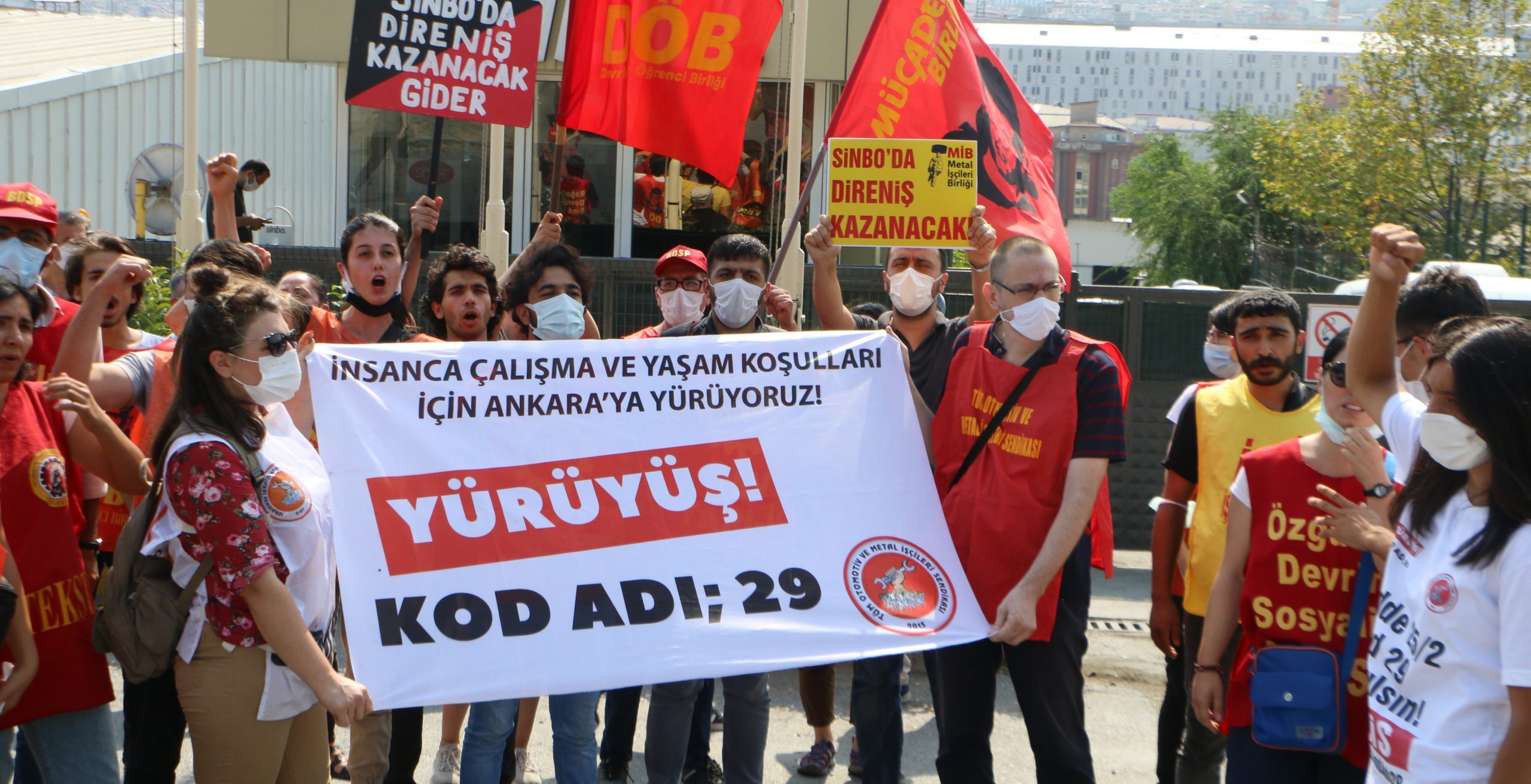 İstanbul Avcılar’da bulunan Sinbo Fabrikası’nda çalışan ve kötü çalışma koşullarına karşı sendikaya üye olduktan sonra Kod-29 gerekçesiyle işten çıkarılan Tüm Otomotiv ve Metal İşçileri Sendikası (TOMİS) üyesi Dilbent Türker’in sürdürdüğü direniş 188’inci gününe girdi. “İşe iade, Kod-29’un kaldırılması ve sendikal faaliyetlerin engellenmemesi” talepleriyle direnen Türker, hakları için Ankara’ya yürüme kararı aldı. Sinbo fabrikası önünde yapılan basın açıklamasıyla Ankara yürüyüşü başladı. Yapılan basın açıklamasında, “İnsanca çalışma ve yaşam koşulları için Ankara’ya yürüyoruz. Yürüyüş! Kod adı:29” pankartı açılırken sık sık “Sinbo işçisi yalnız değildir”, “Yaşasın sınıf dayanışması” ve “Yolumuz işçi sınıfının yoludur” sloganları atıldı. Açıklamaya siyasi parti temsilcilerinin yanı sıra birçok yurttaş katıldı.
