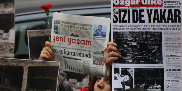 “Bu ateş sizi de yakar” manşetiyle 4 Aralık 1994’te bayilere ulaşan Özgür Ülke Gazetesi, 2 Aralık’ı 3 Aralık’a bağlayan gecenin karanlığında bombalandı. İstanbul’da 2, Ankara’da bir bürosuna yönelik eş zamanlı saldırıda, gazetenin ulaştırma görevlisi Ersin Yıldız katledildi, 23 kişi yaralandı, gazete binası enkaza dönüştü. Çiller hükümetinin yargı eliyle yayını engellenemeyen Özgür Basın geleneği, katliamla susturulmak istendi.