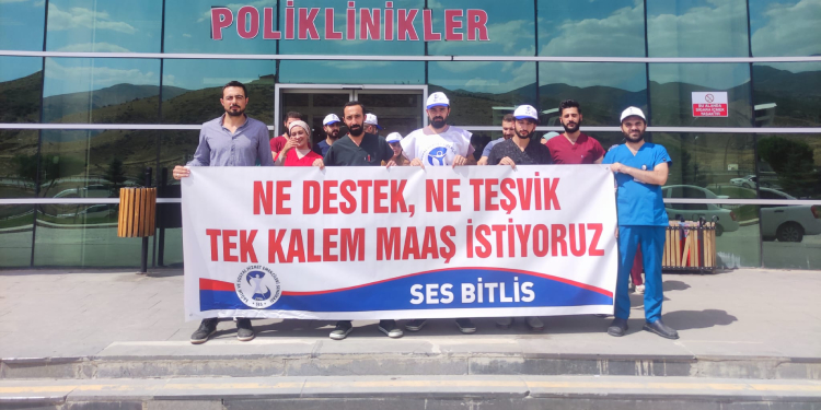 Sağlık Emekçileri Sendikası (SES) Bitlis Şubesi, Sağlık Bakanlığı’nın “Sağlıkta Beyaz Reform” adıyla duyurduğu Ek Ödemeye Yönetmeliğine tepki göstermek amacıyla Tatvan Devlet Hastanesi önünde bir araya geldi. Çok sayıda sağlıkçının katıldığı açıklamada, “Ne destek ne teşvik tek kalem maaş istiyoruz” pankartı açıldı.