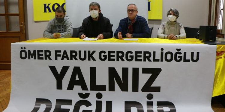 Kocaeli’nde bulunan çok sayıda Demokratik Kitle Örgütleri ile siyesi parti, Halkların Demokratik Partisi (HDP) Milletvekili Ömer Faruk Gergerlioğlu’nun vekilliğinin düşürülmesini Kocaeli Eğitim-Sen şubesinde yaptıkları basın toplantısıyla protesto etti. Açıklamanın yapıldığı salona, “Ömer Faruk Gergerlioğlu yalnız değildir” pankartı asıldı.