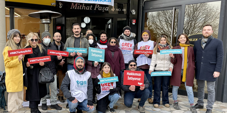 BBC’nin İstanbul ofisinde çalışan 13 basın emekçisi, işverenle yürütülen Toplu İş Sözleşmesi (TİS) görüşmelerinin uzlaşmazlıkla sonuçlanması üzerine 14 Ocak’ta greve çıkmışlardı. Gazeteciler grevin 5. gününde.