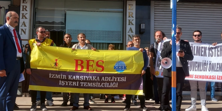 Büro Emekçileri Sendikası (BES) İzmir Şubesi, Karşıyaka Adliyesi Çiğli ek binasındaki asansörlerde yaşanan arızalara dair açıklama yaptı. BES Şube Hukuk Sekreteri Veli Salgın, binanın çürük olduğunu ve karot testi yapan belediye çalışanlarının “bina sağlam çalışabilirsiniz” dediğini aktardı. Salgın, “Fakat yaşanan her sarsıntıda hem adliye hem de belediye çalışanları ecel terleri dökmekte. Beton yığını içerisinde kalmak istemiyoruz. Bu hususta Belediye Başkan Selim Utku Gümrükçü’den sendika temsilciliği olarak randevu istedik. Ama randevu vermedi. Bu binada yaşanabilecek olumsuzluklardan sorumlu olacaklarını hatırlatmak isteriz” dedi.