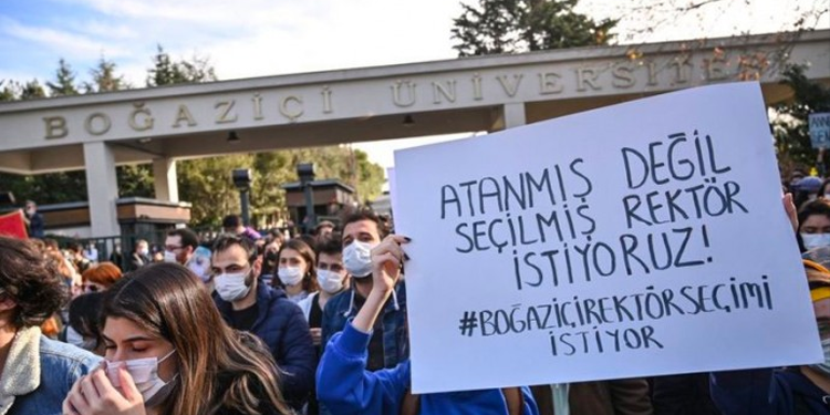 Boğaziçi Üniversitesi önünde kayyım rektör Melih Bulu’yu protesto etmek amacıyla açılan sergide “Kabe fotoğrafının yere serildiği” iddiasıyla gözaltına alınan 4 kişiden 2’si tutuklama talebiyle mahkemeye sevk edildi.