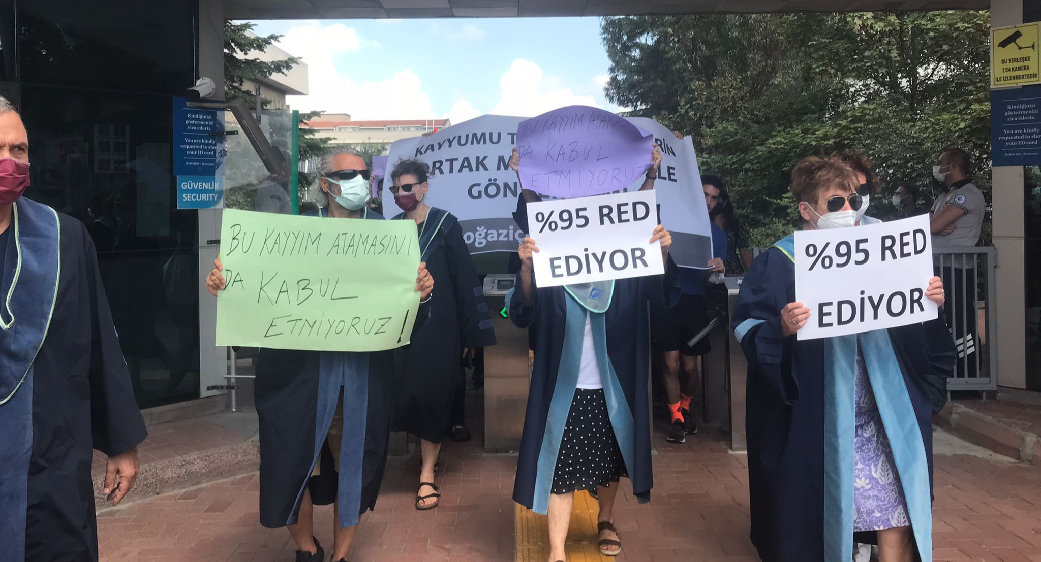 Melih Bulu’nun ardından AKP’li Cumhurbaşkanı Tayyip Erdoğan tarafından üniversiteye rektör olarak kayyım vekili ve yardımcısı Naci İnci’nin atanması üzerine Boğaziçi Üniversitesi öğretim üyeleri bu karar dönük itirazlarını düzenledikleri yürüyüşle gösterdi.