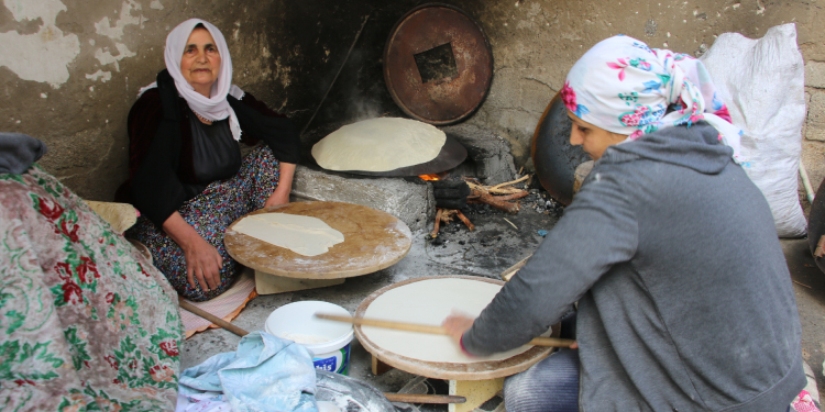 Botanlı kadınlar depremzedeler için ekmek pişiriyor