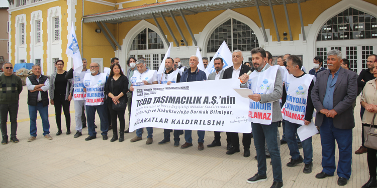 Açıklamada konuşan BTS Şube Başkanı Süleyman Bozkurt, güvenli, ekonomik ve ulaşılabilir bir demiryolu hizmeti için yaz kış demeden çalıştıklarını ifade etti. Bozkurt, “Bizler yazılı sınavlarda 96-98-100 puan alıp, mülakatlarda 70 altında puan verilmek suretiyle saf dışı bırakılan nitelikli demiryolcularız” dedi. Kendilerinin torpille iş başına gelmediklerine dikkati çeken Bozkurt, sendikalarına karşı ayrımcılığa son verilmesini istedi. “Mülakatı değil, liyakati esas alın” diyen Bozkurt, hukuksuz mülakatlara karşı açtıkları 20 davadan 7’sinin idare mahkemeleri kararıyla iptal edildiğini hatırlattı.