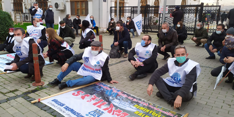 Öte yandan BTS İzmir Şubesi, sürgünlere ve haksız uygulamalara karşı 56 haftadır oturma eylemlerini ve açıklamalarına devam ediyor.