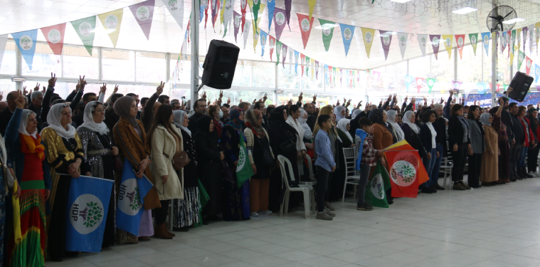 Biz savaş olmasın diyoruz, onlar tecritte ısrar ediyor. Bugün İmralı’da Sayın Öcalan’a yönelik ağırlaştırılmış bir tecrit var. Tecridin bir insan hakları ihlali, demokrasi ayıbı olduğunu ve meşru bir tarafı olmadığın her yerde söyledik. Bir kez daha ifade ediyoruz, kendi yasalarına bile uymayan, anayasayı bile uygulamayan ve keyfi davranarak İmralı avukatları ve ailesini göndermeyen, bundan ısrar eden, kendi yasalarını tanımamakta ısrar eden bir zihniyet var. Oysa barış sürecinde 2013-2015 yılları arasında Sayın Öcalan’ın devrede olduğu dönemde, tecridin olmadığı, barış, huzur, müzakerin olduğu dönemde bu ülkede ne bir ekonomik krizin yaşandığını ne bir istikrarsızlığın yaşandığın görmedik. Barışın, müzakerenin ülkeyi faydalarını, ağlayamayan anneleri, cenazelerin kapılara gitmediğini gencecik insanların toprağı düşmediğini gördük. Çünkü o dönem diyalog süreci vardı. 28 Şubat 2015’te Dolmabahçe Mutabakatının yok sayılmasıyla birlikte Kürtlerle barış yerine Kürtlerle düşmanlığı esas aldılar. O tarihten itibaren Sayın Öcalan’a yönelik tecrit ağırlaştırıldı ve derinleştirildi hem de Kürtlerin bütün kazanımlarına el konuldu, Kürtler demokratik siyasetin dışına atılmak istendi ve bu politikalar hala devam ediyor. Cezaevlerinde binlerce siyasetçi var. Figen Yüksedağlar, Selahattin Demirtaşlar, Gültan Kışanaklar, İdris Balukenler, Ayla Akat Atalar, Sebahat Tunceller, belediye eşbakanlarımız var. Yerlerine kayyım atanan ve her bir kayyımın Kürtleri inkar ettiği hırsızlığı tavan yaptığı bir süreci başlattılar. Belediye eşbaşkanlarımız yerine atanan kayyımların Sayıştay raporlarında binlerce usulsüzlük ve hırsızlığı var. Kürt düşmanlığını esas alanlar sadece Türkiye’de değil, dünyanın her yerinde Kürt halkına büyük bir nefret ve öfke ve ırkçılığı yarattılar.