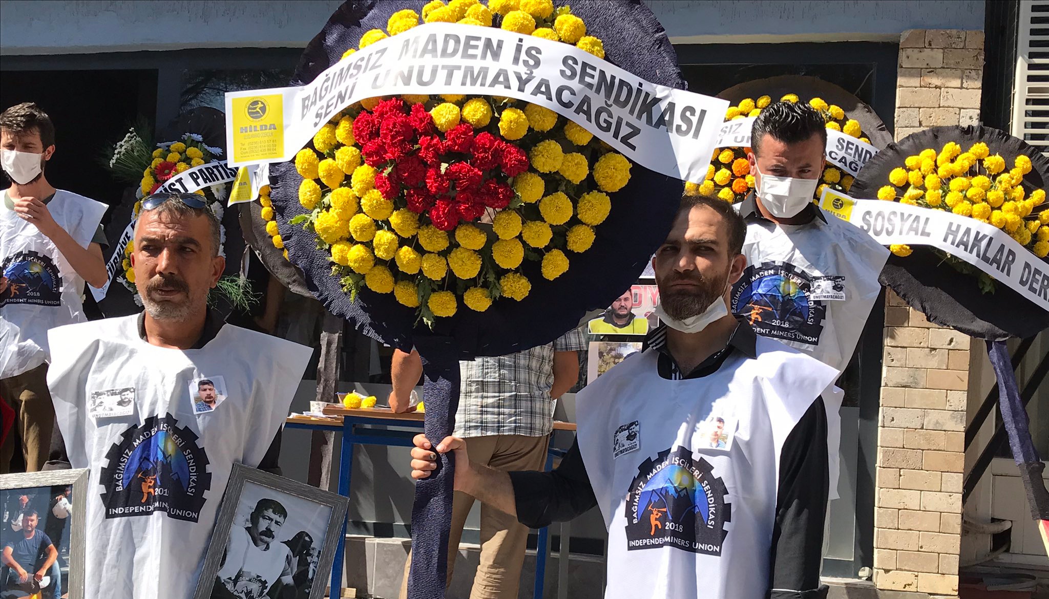 Nakliyat İş Genel Başkanı Ali Rıza Küçükosmanoğlu şunları söyledi: “Dünya Sendikalar Federasyonu maden işçilerinin acısını paylaşıyor. İki arkadaşımız hakları için mücadele ederken diğer yandan da sarı sendikacılığa karşı da mücadele verdi.”
