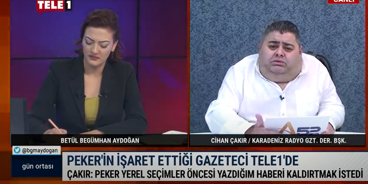 Tele1’de Betül Begümhan Aydoğan’a konuk olan Çakır, Peker’in kendisini tehdit ettiğini kabul etti. Cihan Çakır, “Ünye’deki seçimin neden kendisini etkilediğini sordum. Peker’in rica etmesinin sebebi, bakanlığın kendisini aramasıymış. Bahsettiği bakanlık ise İçişleri Bakanlığı… Biz hiç yapmadığımız bir şekilde ilk haberi kaldırmak zorunda kaldık. Bu kez yine aynı istekle geldiklerinde haberi kaldırmadık ve ‘Çok gazetecilik oynamak istiyorsanız gazete kurun’ dedik. İsteklerinin etik olmadığını ifade ederek bir dahaki taleplerini yerine getirmeyeceğimizi söyledik. Haberimizi kaldırmayacağımızı bunun etik olmadığını ifade ettik.” dedi.