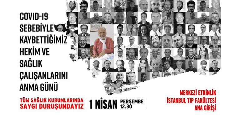 İstanbul Tabip Odası (İTO), Covid-19 pandemisinin resmen ilan edildiği 11 Mart 2020’den bugüne dek Covid-19 nedeniyle yaşamını yitiren sağlık çalışanları için bir dakikalık saygı duruşuna hazırlanıyor. İTO üyeleri, 1 Nisan Perşembe günü saat 12:30’da İstanbul Üniversitesi Çapa Tıp Fakültesi önünde toplanarak, Koronavirüs salgınında yaşamını yitiren sağlık çalışanları için bir dakikalık saygı duruşu ve anma etkinliği gerçekleştirecek.