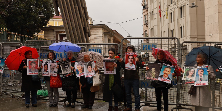 Cumartesi Anneleri/İnsanları, gözaltında kaybedilen yakınlarının akıbetini sormak ve faillerin yargılanması talebiyle her hafta Galatasaray Meydanı’nda düzenledikleri eylemin 1096’ncısını gerçekleştirdi. Karanfiller ve kaybedilenlerin fotoğraflarını taşıyan Cumartesi Anneleri, bu haftaki eylemde 29 yıl önce gözaltına aldıktan sonra kaybettirilen İlyas Eren’in akıbetini sordu. Çok sayıda hak savunucusunun ve kayıp yakınlarının katıldığı açıklamanın basın metnini İHD İstanbul Şubesi Başkanı Jiyan Tosun okudu.