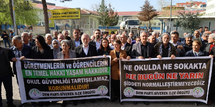 Heyet, okul binası önünde basın açıklaması yaptı. Açıklamada, “Ne okulda ne sokakta ne bugün ne yarın şiddeti normalleştirmeyeceğiz” ve “Öğretmenlerin ve öğrencilerin en temel hakkı, yaşam hakkıdır. Okul güvenliği tartışılamaz, korunmalıdır” pankartları açıldı. Açıklamada ilk olarak DEM Parti Eğitimden Sorumlu Eş Genel Başkan Yardımcısı İlknur Birol konuştu. İlknur Birol, 30 yıl boyunca eğitim kademelerinde çalıştığını belirtti. Son iki gündür okullarda yaşananların büyük bir alarm olarak gözüktüğünü ifade eden İlknur Birol, “Yaşananlar, bugün çocukların çocukları vurduğu ülke haline geldiğimizin göstergesidir. Art arda yaşadığımız iki olay çocuklara çocuklar tarafından kurşun yağdırıldığı bir iklimden geçiyoruz. Onlarca ölüm ve yaralıdan söz ediyoruz. Başka ülkelerde yaşanan ve televizyonlarda haber diye izlediğimiz şeyler hemen yanı başımızda yaşanıyor. Yıllardır eğitim sistemi üzerinde siyasi kaygılarla oyun oynayanların, eğitim sistemini sermayeye ucuz iş gücü olarak peşkeş çekenlerin, eğitim sistemini bir grubun inancına mensupları için kayrılma haline getirildiği siyasi zihniyetin sonuçlarını yaşıyoruz. Bu ölümler ve saldırılar asla münferit değildir. İnanılmaz derecede politiktir. Bir sonuçtur. Bu işin sorumluları var. Bunlar kendiliğinden olmadı” dedi.