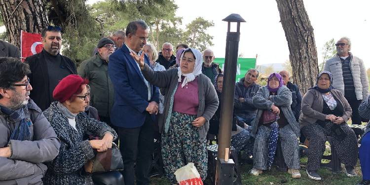 Ziyaret sırasında konuşan İbrahim Akın, 7554 sayılı yasa ile ilgili Anayasa Mahkemesi’ne başvuru yapıldığını aktardı. Bu yasaya dayanarak birçok yerde doğaya karşı saldırılar olduğunu kaydeden Akın, “Yaklaşık 10 gün önce yapılan bir genelgeyle 5 bin 93 tane zeytin ağacının yerinden edilmesiyle ilgili bir faaliyet başlatıldı. Açıkçası, ülkede artık bağımsız bir yargı kurumu olmadığını, hukuksuzluğun alenen yapıldığını görüyoruz. Şirketlerin ihtiyacına bağlı olarak görevlendirilmiş bakanlar ve komisyon başkanlarıyla çok kavga verdim. Bunlar şirketlerle açıkça işbirliği yapıyorlar. Dolayısıyla planlı bir saldırının karşısındayız. O nedenle yapılan iş karşısında meşru haklarımızı savunuyoruz. Anayasa’nın bize verdiği doğamızı savunma hakkımız ihlal ediliyor. Esra Işık, toprağını savunduğu sırada tutuklanıyor. O sırada topraklarında keşif yapılıyor. Bu hukuksuz bir şey. Demokratik, meşru hakkımızı kullanmak, birlikte mücadele etmekten başka yolumuz yok. Geldiğimiz kritik aşamayı durdurmamız gerekiyor” dedi.