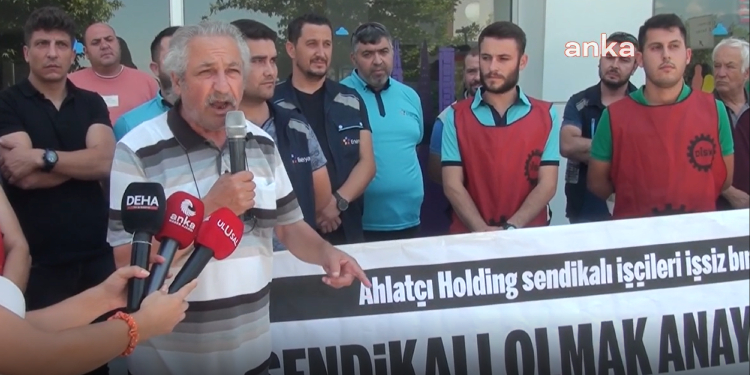 “Her gün çalışmak için girdiğimiz bu kapıda, bugün sendika üyesi olduğumuz gerekçesiyle işlerinden atılan enerji işçileri olarak buradayız. Bizler Enerya gaz dağıtım şirketinin çalışan işçileriyiz. Senelerdir ağır ve tehlikeli iş kolunda, güvencesiz, geleceksiz ve düşük ücretlerde çalıştırılıyoruz. Açıklanan enflasyon oranları ile eriyen maaşlarımız karşısında, hiçbir sosyal demokratik haklarımız olmamasından kaynaklı, DİSK Enerji-Sen sendikasına üye olduk ve enerji dağıtım şirketinde sendikal örgütlenme faaliyetini yürüttük. Yürüttüğümüz bu faaliyet sonucunda işletmede yüzde 51 çoğunluğu sağladık. DİSK Enerji-Sen olarak, bakanlığa yetki tespiti başvurusunda bulunduk. Bizler Türkiye Cumhuriyeti Anayasasının 51. maddesinin bizlere tanımış olduğu, ‘sendikalara serbestçe üye olma’ hakkımızı kullandığımız için, işletme müdürleri ile yaptığımız görüşmede, e-devlet hesaplarımızı açmamızı ve sendikadan istifa etmemizi isteyerek, Ahlatçı Holding’in sendikalı işçi çalıştırmak istemediğini söylediler. Bizler ise Anayasal haklarımızı kullandığımızı, istifa etmemiz için yapılan bu baskının, mobbingin Türk Ceza Kanunu’nun 118. maddesine göre suç olduğunu söyledik.