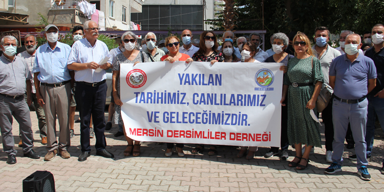 Mersin Dersimliler Derneği, Dersim’in Hozat ilçesinin kırsal bölgelerinde 14 gündür süren yangına ilişkin açıklama yaptı. Dernek binasında yapılan açıklamada, “Yakılan tarihimiz, canlılarımız ve geleceğimizdir” pankartı açıldı. Toplantıya, Halkların Demokratik Partisi (HDP) Mersin Milletvekili Fatma Kurtulan, kentteki dernek, meslek odaları ve sivil toplum örgütü temsilcileri de destek verdi.