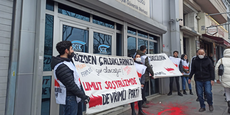 Devrimci Parti, Beyoğlu ilçesinde bulunan Sosyal Güvenlik Kurumu (SGK) önünde işçi haklarının gasp edilmesini protesto etti. Açıklamada, “Bizden çaldıklarınızı geri alacağız” pankartı açıldı.