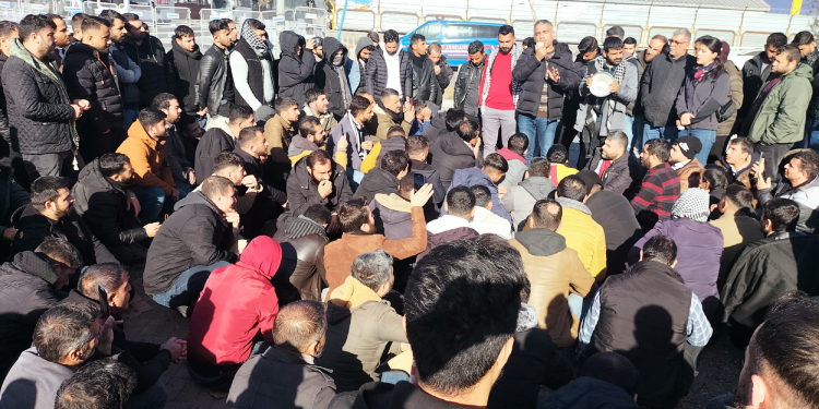 Yüzlerce işçinin jandarma barikat önünde bekleyişi devam ediyor.