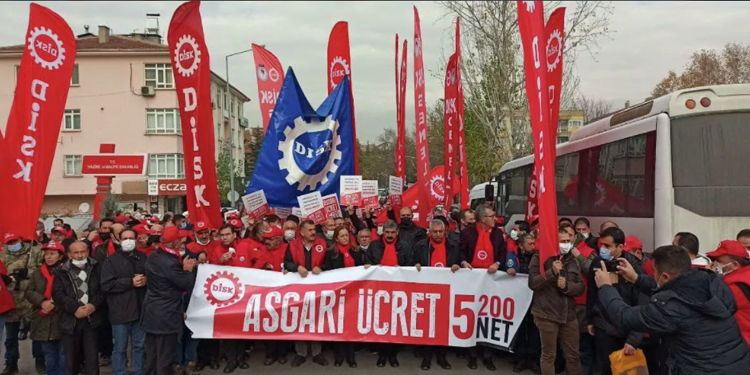 2022 için belirlenecek asgari ücret görüşmeleri sürerken, DİSK Ankara’da eylem yapıyor.