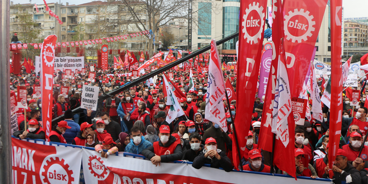 Devletin sorumluluk alması gerektiğinin altını çizen Çerkezoğlu, “Asgari ücretin ve tüm ücretlerin asgari ücret tutarı kadar bölümünde vergi ve kesintiler kaldırılarak tüm ücretlere 1000 lira iyileştirme yapılmalıdır. Tüm çalışanlara 1000 lira ek destek sunmalıdır. İşçi sınıfının yaşadığı gelir kaybını telafi etmesinin en önemli yolu, sendika ve grev hakkıdır. Bu hakların kullanımı önündeki tüm yasal ve fiili engelleri kaldırılmalıdır. O zaman buradan bir kez daha haykırıyoruz: Yoksulluğa ve emeğimizin ucuzlatılmasına teslim olmayacağız” ifadelerini kullandı.