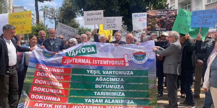 Mersin Varto Kültür ve Dayanışma Derneği (VARTO-DER), Mûş’un Gimgim (Varto) ilçesinin Xwarik köyü sınırları içerisinde başlatılacak Jeotermal Enerji Santrali (JES) projesine karşı Akdeniz ilçesinde bulunan Özgür Çocuk Parkı’nda açıklama yaptı. Eyleme Mersin Emek ve Demokrasi Platformu ve çok sayıda yurttaş katıldı. “Varto’da jeotermal istemiyoruz” pankartının açıldığı eylemde “Doğa bizimdir Varto bizimdir”, “Halkımız jeotermal istemiyor” ve “Jeotermal öldürür, doğa yaşatır” dövizleri taşıdı. Açıklamayı dernek üyesi Güler Bingöl okudu.
