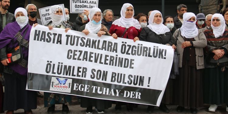 Ege Tutuklu ve Hükümlü Yakınları Derneği (EGE TUHAYDER) hasta tutukluların serbest bırakılması talebiyle Bayraklı’da bulunan İzmir Adliyesi önünde basın açıklaması gerçekleştirdi. Açıklamada, “Hasta tutsaklara özgürlük cezaevlerinde ölümler son bulsun” pankartı açılırken, “Zindanlara ses ver”, “Deng Bıde denge mırovahiye”, “İnfaz yakmalara son” dövizleri taşındı. Açıklamada sırasında sık sık “Siyasi tutsaklar onurumuzdur” sloganı atıldı. Açıklamaya, Halkların Demokratik Partisi (HDP), İnsan Hakları Derneği (İHD) İzmir Şubesi, Özgürlük İçin Hukukçular Derneği (ÖHD), İzmir Barış Anneleri Meclisi, Halkların Demokratik Kongresi (HDK) İzmir Meclisi ve Anadolu Yakınlarını Kaybedenler Derneği (ANYAKAYDER) üyeleri de destek verdi.