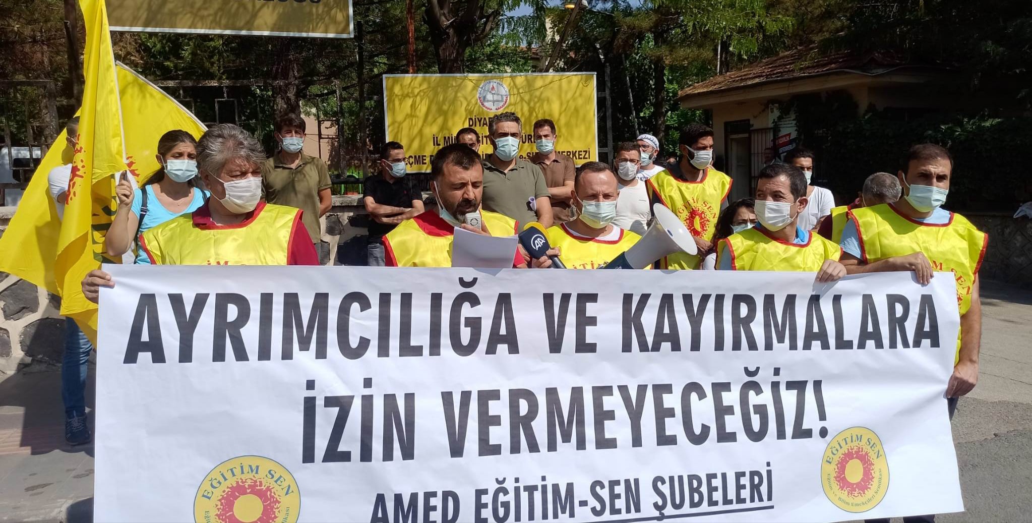 Eğitim Sen Diyarbakır 1 ve 2 Nolu şubeleri, müdür ve müdür yardımcılığı mülakatlarında haksız puanlamaya karşı İl Milli Eğitim Müdürlüğü önünde açıklama yaptı. “Ayrımcılığa ve kayırmalara izin vermeyeceğiz” yazılı pankartın açıldığı açıklamaya, çok sayıda eğitim emekçisi katıldı.