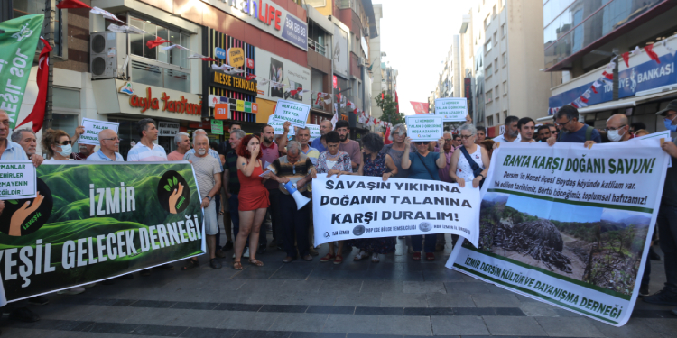 Ardından konuşan İzmir Yaşam Alanları temsilcisi Ahmet Kaya da, ekolojik talana karşı birlikte mücadele çağrısı yaptı.