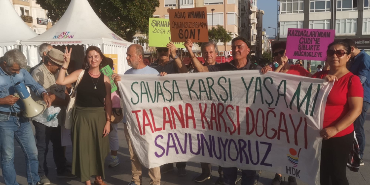 Özaydın, sözlerini şöyle sürdürdü: “Biz Çanakkale’de ekoloji mücadelesi verenler ve yaşam savunucuları olarak Çanakkale’den, Kazdağları’ndan haykırıyoruz. Ülkenin her köşesinde yürütülen yağma, talan ve katliam politikalarına karşı çıkıyoruz. Savaş en büyük ekolojik yıkımdır. Kabul etmiyoruz, Kazdağları’ndan Cudi’ye bu savaş politikalarına karşı direneceğiz. Susmayacağız”