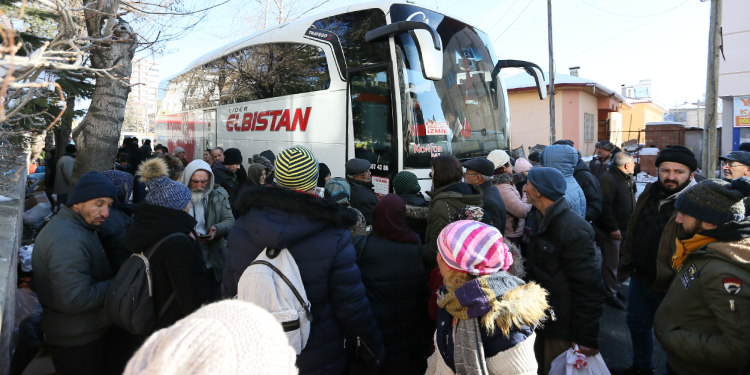 Elbistan’da yaşanan depremde barınma ve ısınma problemleri çözülmeyen binlerce depremzede başka kentlere göç etmeye başladı. Depremin üzerinden geçen 5 güne rağmen barınacak yer bulamayan depremzedeler, Elbistan Cemevi’ne başvurarak başka kentlere gitmek istedi. Cemevi ve duyarlı iş insanlarının girişimleriyle ilçeye gönderilen otobüslere binen depremzedeler, başka kentlerin yolunu tuttu. Zaman zaman izdihamların da yaşandığı ilçede, depremzedeler, “Donarak ölmemek için başka kentlere gitmemiz gerekiyor” dedi.