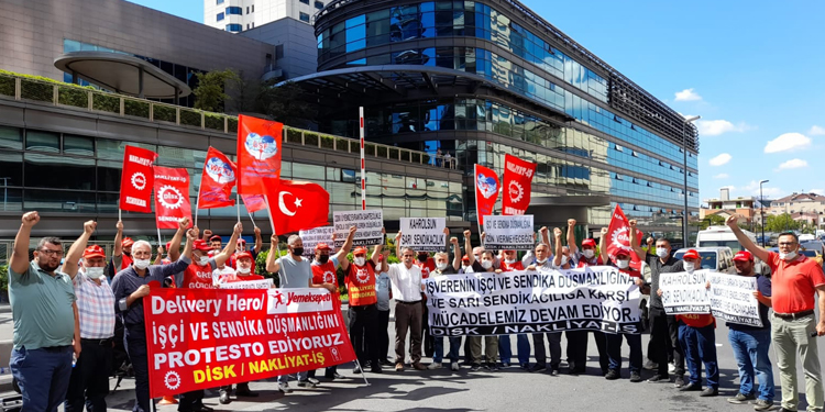 Yemeksepeti firmasında çalışan taşıma emekçilerinin sendikal örgütlenme süreci hakkında bilgi veren Küçükosmanoğlu, “Şirkette çalışan yaklaşık 2000 civarında taşıma işçisi sendikal örgütlenme kapsamında sendikamıza üye oldu. Ancak firma sendikal örgütlenmenin önünü kesmek amacıyla işyeri kodunu değiştirdi ve çok sayıda işçiyi, firmadan çıkışını yaparak, aynı adreste kurulan yeni firmalara geçirdi. Öte yandan işyeri kodunu da usulsüz işlemlerle değiştirmeye yöneldi. Konuyla ilgili Çalışma ve Sosyal Güvenlik Bakanlığı ve Cumhuriyet Savcılıklarına gerekli itirazlarımızı yaptık. Yemeksepeti firmasının bu girişimleri demokratik bir hak olan, emekçilerin sendikal örgütlenmesinin önünü kesmeye yöneliktir. Başta İstanbul olmak üzere, Ankara, İzmir, Bursa, Adana, Antalya, Eskişehir, Konya’da yaklaşık altıbin civarında emekçinin demokratik hakları ellerinden alınmaya çalışılıyor” dedi.