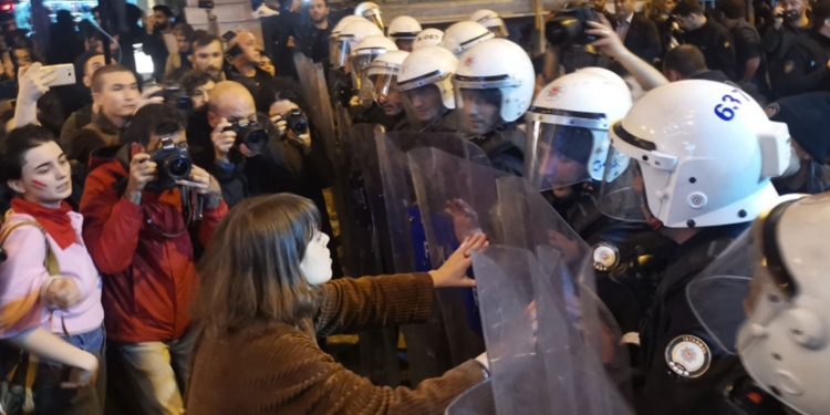 İstanbul’da 2020 yılında düzenlenen 8 Mart Feminist Gece Yürüyüşü’ne katılan 35 kadının, “2911 sayılı Toplantı ve Gösteri Yürüyüşleri Kanunu’na muhalefet etmek”, “görevi yaptırmamak için direnmek” ve “kamu malına zarar vermek” iddialarıyla yargılandığı davanın 8’inci duruşması İstanbul 58’inci Asliye Ceza Mahkemesi’nde görüldü. Mahkemeye yargılanan isimler katılmazken, avukatları hazır bulundu.