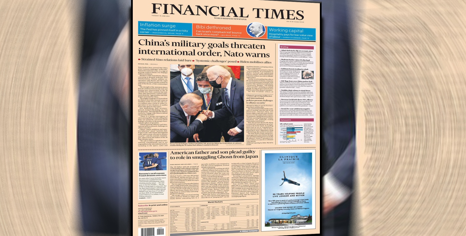Zirvenin ardından Birleşik Krallık merkezli Financial Times, Erdoğan ve Biden’ın bir fotoğrafını manşetinde kullandı. Biden ile selamlaşmak üzere oturduğu koltuktan ayağa kalkmaya çalıştığı sırada çekilen fotoğraf karesi, Erdoğan ayakta duran Biden’in önünde eğildiği izlenimi uyandırıyor.