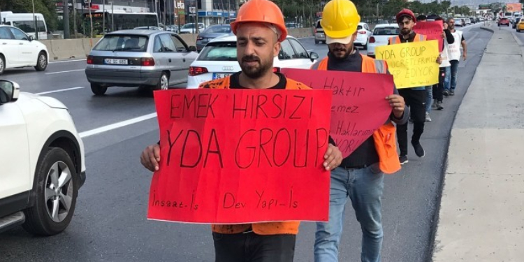 İstanbul’un Ataşehir ilçesinde YDA İnşaat Sanayi ve Ticaret A.Ş.’ye bağlı Finans Merkezi Şantiyesi’nde 10 gündür işverenlerle ihbar ve kıdem tazminatlarını, 45 saat üzeri mesailerini ve hafta ile bayram tatilleri için dün greve başlayan işçiler, grevlerine bugün de devam etti. İş yerinde sabahlayan işçiler, sabahın erken saatlerinde “YDA Group ve tahtakuruları kanımızı emiyor”, “Finans Merkezi Şantiyesi’nde hak gasplarına son”, “YDA Group’un işçi kampları denetlesin”, “Emek hırsızı YDA Group” ve “Köle değiliz” pankartlarıyla 5 Beş Karayolu üzerinde yürüyüş gerçekleştirdi. Birçok işçinin yaptığı yürüyüşe yoldan geçen araçlar kornolar çalarak destek verdi.