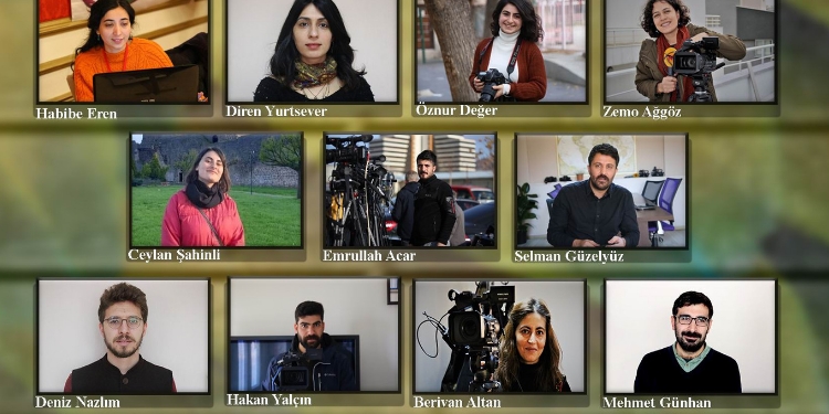 Ankara’da 7 ay tutuklu kaldıktan sonra 16 Mayıs’ta tahliye edilen Mezopotamya Ajansı (MA) Yazı İşleri Müdürü Diren Yurtsever, MA muhabirleri Berivan Altan, Ceylan Şahinli, Deniz Nazlım, Emrullah Acar, Hakan Yalçın, Selman Gözelyuz ve Zemo Ağgöz, JINNEWS muhabirleri Habibe Eren ve Öznur Değer ile bir süre MA Ankara bürosunda stajyer olarak çalışan Mehmet Günhan hakkında “örgüte üye olmak” iddiasıyla açılan davanın üçüncü duruşması Ankara 4’üncü Ağır Ceza Mahkemesi’nde görüldü. Duruşmaya MA muhabiri Deniz Nazlım ve Hakan Yalçın ve avukatları katıldı.