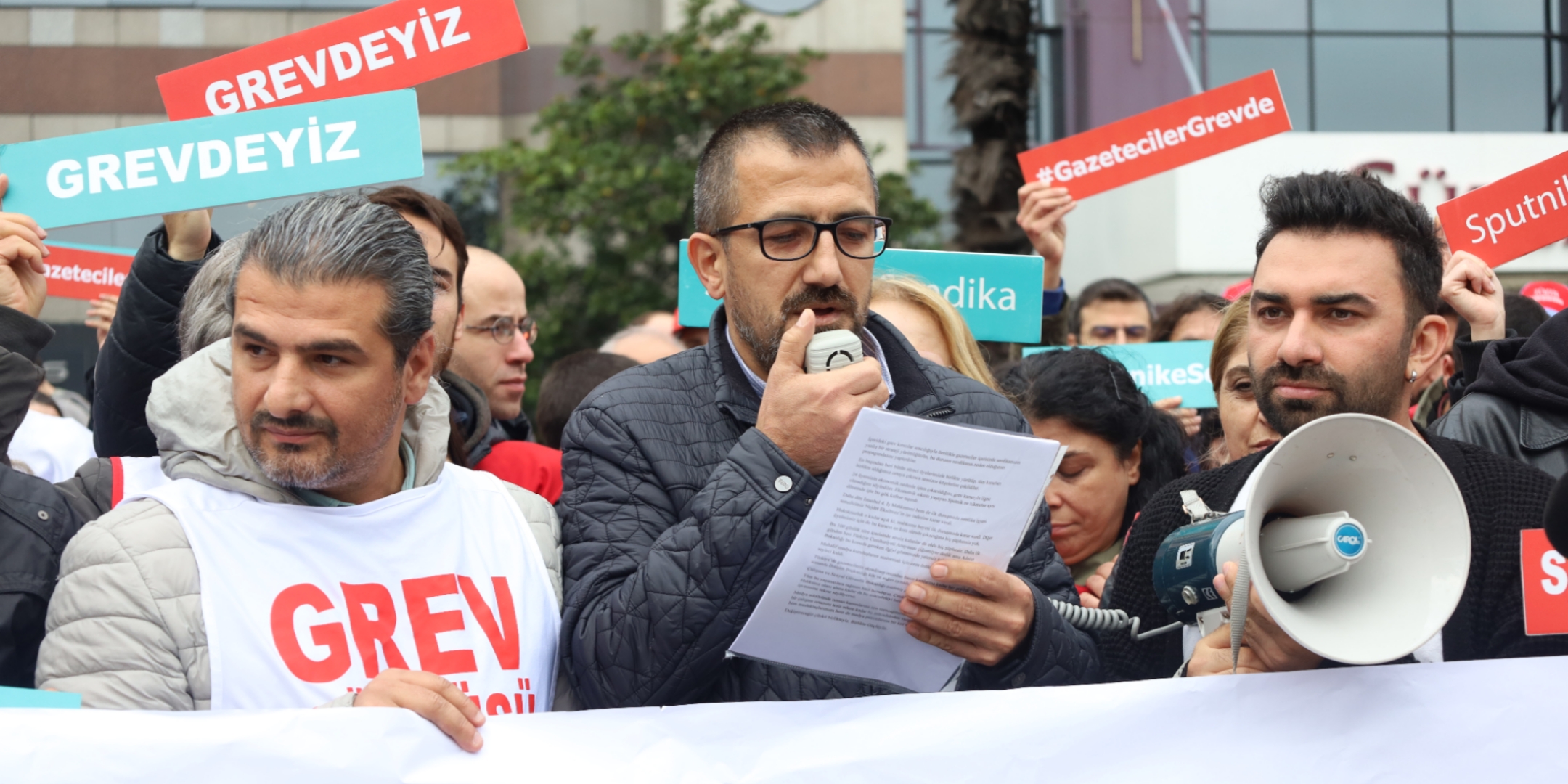 Türkiye Gazeteciler Sendikası (TGS) ve Rossiya Segodnya Uluslararası Haber Ajansı (Sputnik) Türkiye Bürosu arasında Toplu İş Sözleşmesi (TİS) görüşmelerinde anlaşmaya varılmaması üzerine TGS öncülüğünde greve başlayan gazeteciler, eylemlerinin 100’ünci gününde Şişli’de bulunan Süzer Plaza önünde basın açıklaması yaptı.