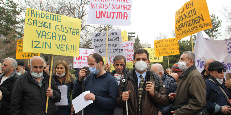Ülkede yaşayan bir milyon görme engellinin hiçe sayılmasını kabul etmediklerini söyleyen Demirci, “En doğal vatandaşlık hakkımız olan, Anayasa, 5378 Sayılı Engelliler Kanunu ve Birleşmiş Milletler (BM) Engelli Hakları Sözleşmesinin 29. maddesiyle güvence altına alınan gizli ve bağımsız oy kullanma hakkımızın seçim yasasıyla verilmesini sağlamak için buradayız” dedi.