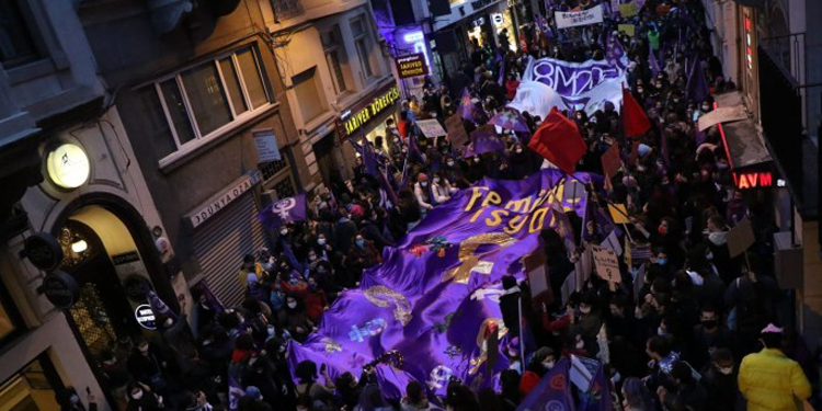 İstanbul’da 8 Mart Dünya Kadınlar Günü’nde Taksim’de düzenlenen 19. Feminist Gece Yürüyüşü’ne katıldıkları gerekçesiyle dün akşam yapılan operasyonda 12 kadın gözaltına alındı. “Cumhurbaşkanına hakaret” gerekçesiyle gözaltına alınan kadınların, bugün Çağlayan’da bulunan İstanbul Adliyesi’ne getirilmesi bekleniyor.